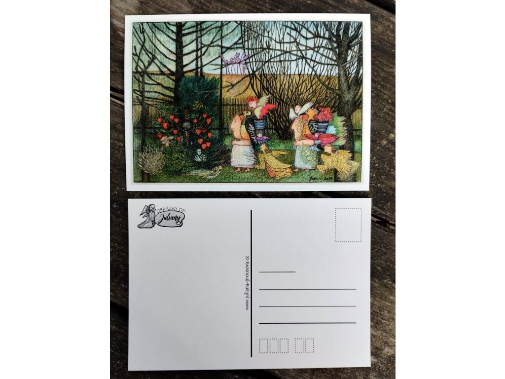 Pohlednice velikosti A6 s předtištěnou zadní stranou. – Nekupujte prosím pohlednici samostatně jako jeden kus, ale nejméně tři kusy. Nebo se dá přidat jeden kousek k nějakému obrázku.